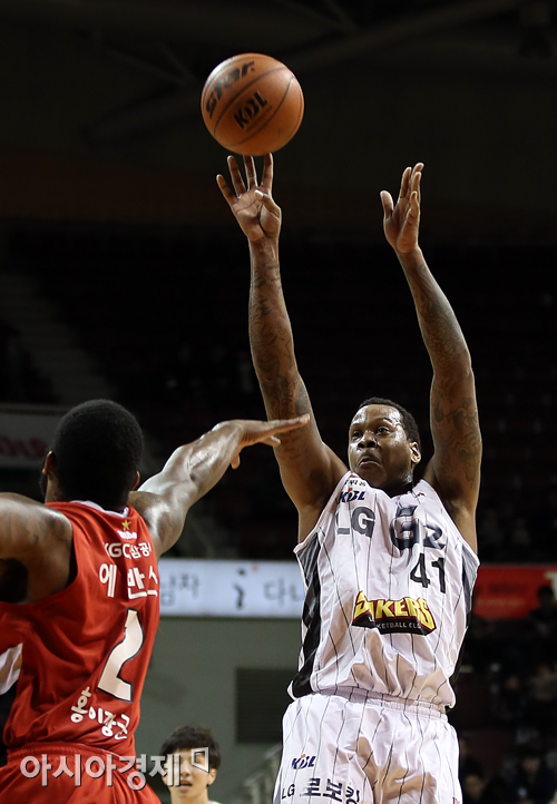 [안양=아시아경제 정재훈 기자] 9일 오후 안양실내체육관에서 열린 KB국민카드 2013-2014 프로농구 KGC와 LG의 경기. LG 제퍼슨이 슛을 쏘고 있다. 정재훈 기자 roze@asiae.co.kr<ⓒ세계를 보는 창 경제를 보는 눈, 아시아경제(www.asiae.co.kr) 무단전재 배포금지>