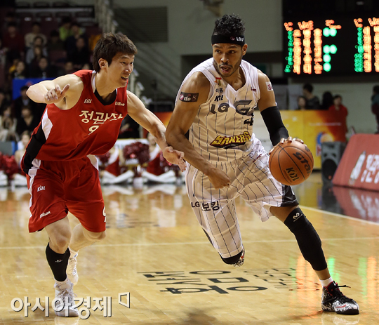 [안양=아시아경제 정재훈 기자] 9일 오후 안양실내체육관에서 열린 KB국민카드 2013-2014 프로농구 KGC와 LG의 경기. KGC 정휘량이 LG 문태종을 쫓고 있다. 정재훈 기자 roze@asiae.co.kr<ⓒ세계를 보는 창 경제를 보는 눈, 아시아경제(www.asiae.co.kr) 무단전재 배포금지>