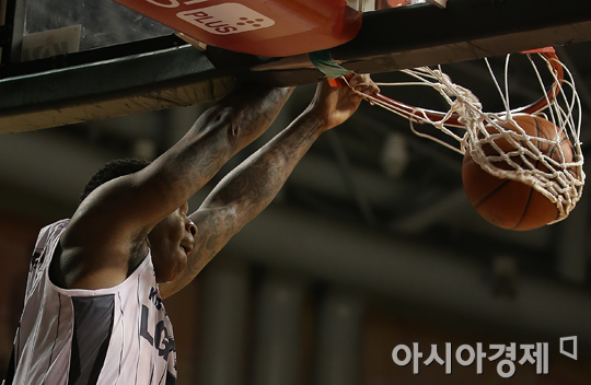 [안양=아시아경제 정재훈 기자] 9일 오후 안양실내체육관에서 열린 KB국민카드 2013-2014 프로농구 KGC와 LG의 경기. LG 제퍼슨이 문태종의 패스를 받아 그대로 림에 꽂아넣고 있다. 정재훈 기자 roze@asiae.co.kr<ⓒ세계를 보는 창 경제를 보는 눈, 아시아경제(www.asiae.co.kr) 무단전재 배포금지>