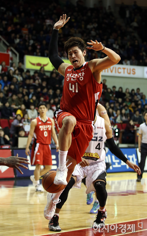 [안양=아시아경제 정재훈 기자] 9일 오후 안양실내체육관에서 열린 KB국민카드 2013-2014 프로농구 KGC와 LG의 경기. KGC 오세근이 공을 놓치고 있다. 정재훈 기자 roze@asiae.co.kr<ⓒ세계를 보는 창 경제를 보는 눈, 아시아경제(www.asiae.co.kr) 무단전재 배포금지>