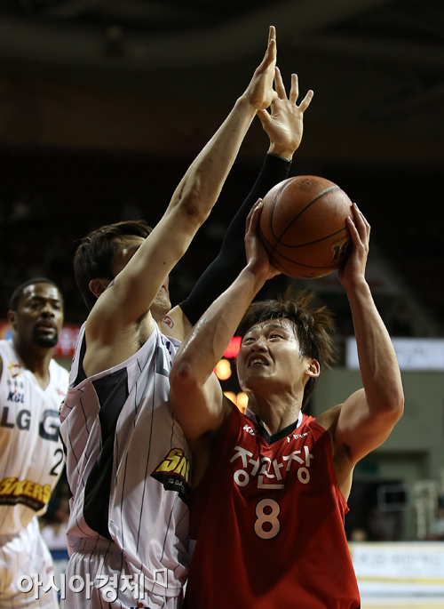 [안양=아시아경제 정재훈 기자] 9일 오후 안양실내체육관에서 열린 KB국민카드 2013-2014 프로농구 KGC와 LG의 경기. KGC 최현민이 슛을 시도하고 있다. 정재훈 기자 roze@asiae.co.kr<ⓒ세계를 보는 창 경제를 보는 눈, 아시아경제(www.asiae.co.kr) 무단전재 배포금지>