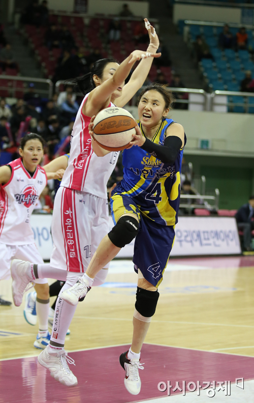 [부천=아시아경제 정재훈 기자] 10일 오후 부천실내체육관에서 열린 우리은행 2013-2014 여자프로농구 하나외환과 신한은행의 경기. 신한은행 최윤아가 슛을 시도하고 있다. 정재훈 기자 roze@asiae.co.kr<ⓒ세계를 보는 창 경제를 보는 눈, 아시아경제(www.asiae.co.kr) 무단전재 배포금지>