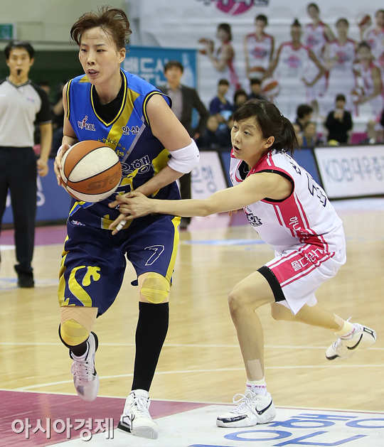 [부천=아시아경제 정재훈 기자] 10일 오후 부천실내체육관에서 열린 우리은행 2013-2014 여자프로농구 하나외환과 신한은행의 경기. 하나외환 신지현이 신한은행 조은주에게 파울을 범하고 있다. 정재훈 기자 roze@asiae.co.kr<ⓒ세계를 보는 창 경제를 보는 눈, 아시아경제(www.asiae.co.kr) 무단전재 배포금지>