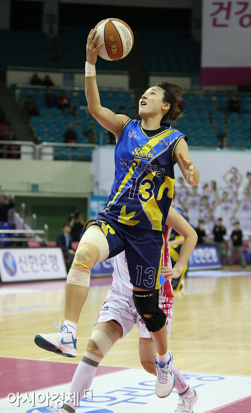 [부천=아시아경제 정재훈 기자] 10일 오후 부천실내체육관에서 열린 우리은행 2013-2014 여자프로농구 하나외환과 신한은행의 경기. 신한은행 김단비가 슛을 시도하고 있다. 정재훈 기자 roze@asiae.co.kr<ⓒ세계를 보는 창 경제를 보는 눈, 아시아경제(www.asiae.co.kr) 무단전재 배포금지>
