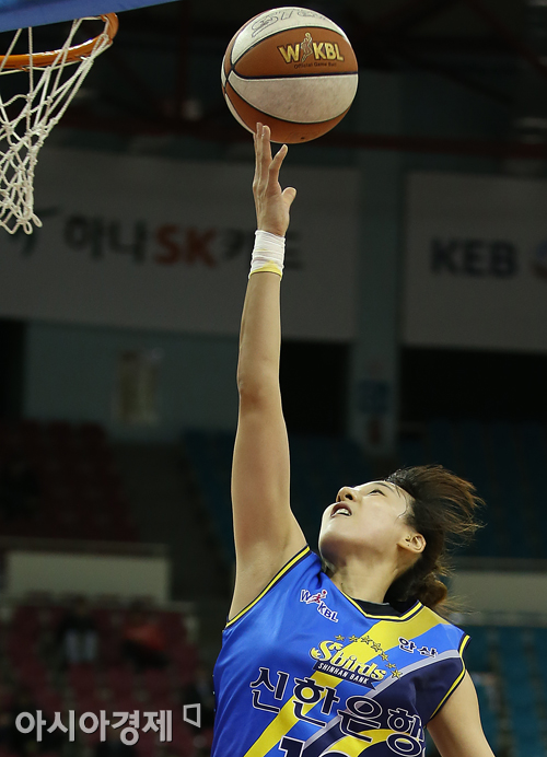 [부천=아시아경제 정재훈 기자] 10일 오후 부천실내체육관에서 열린 우리은행 2013-2014 여자프로농구 하나외환과 신한은행의 경기. 신한은행 김단비가 레이업슛을 시도하고 있다. 정재훈 기자 roze@asiae.co.kr<ⓒ세계를 보는 창 경제를 보는 눈, 아시아경제(www.asiae.co.kr) 무단전재 배포금지>