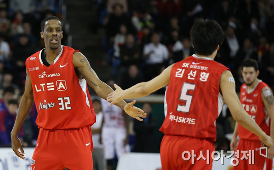 [아시아경제 정재훈 기자] 11일 오후 서울 잠실학생체육관에서 열린 KB국민카드 2013-2014 프로농구 SK와 오리온스의 경기. SK 헤인즈가 골을 성공시키고 김선형과 하이파이브를 하고 있다. 정재훈 기자 roze@asiae.co.kr<ⓒ세계를 보는 창 경제를 보는 눈, 아시아경제(www.asiae.co.kr) 무단전재 배포금지>