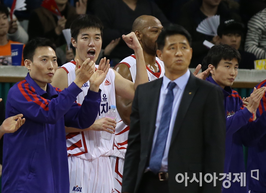 [아시아경제 정재훈 기자] 11일 오후 서울 잠실학생체육관에서 열린 KB국민카드 2013-2014 프로농구 SK와 오리온스의 경기. 오리온스 허일영이 벤치에서 동료의 활약에 환호하고 있다. 정재훈 기자 roze@asiae.co.kr<ⓒ세계를 보는 창 경제를 보는 눈, 아시아경제(www.asiae.co.kr) 무단전재 배포금지>