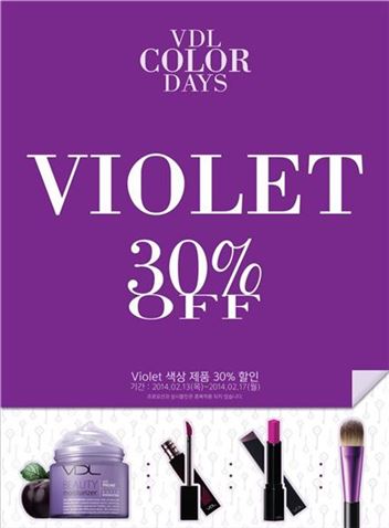 [아시아경제 임혜선 기자]LG생활건강의 메이크업 브랜드 VDL이 13일부터 5일간 'VDL 컬러 데이(Color Day)'를 개최한다. 'VDL 컬러 데이'는 격월로 진행되는 고객 감사 행사로, 지정된 색상의 제품 가격을 할인해준다. 이번 'VDL 컬러 데이'는 '바이올렛 데이'로 진행되며, VDL 전국매장과 온라인 스토어에서 바이올렛 색상 제품을 구매하는 고객에게 30%의 할인 혜택을 제공한다.할인되는 품목수는 약 100개다. 'VDL 엑스퍼트 컬러 립큐브 301'와 'VDL 뷰티 모이스처라이저', 'VDL 컬러 포 아이즈 03' 등이 포함된다.임혜선 기자 lhsro@asiae.co.kr<ⓒ세계를 보는 창 경제를 보는 눈, 아시아경제(www.asiae.co.kr) 무단전재 배포금지>