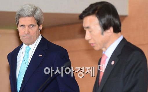[아시아경제 백소아 기자] 존 케리 미 국무부 장관(왼쪽)이 13일 서울 세종로 정부서울청사 외교부에서 열린 한·미 외교장관 회담에서 윤병세 외교부 장관(오른쪽)의 답변을 듣고 있다.백소아 기자 sharp2046@asiae.co.kr<ⓒ세계를 보는 창 경제를 보는 눈, 아시아경제(www.asiae.co.kr) 무단전재 배포금지>