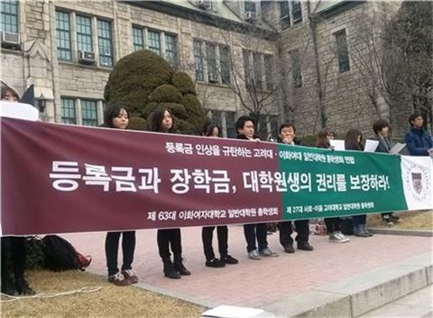[아시아경제 김지은 기자]이화여대와 고려대 대학원생들이 대학원 등록금 인상안 철회하고 대학원생들이 취업후학자금상환제도를 이용하게 해달라고 촉구했다. 17일 고려대·이화여대 일반대학원 총학생회와 참여연대민생희망본부는 서울 서대문구 이화여대 캠퍼스 본관 앞에서 기자회견을 열고 이같이 요구했다.이들은 “대학들은 사회적 비난을 피하고 국가장학금과 기타 국책사업에서 불이익을 받지 않기 위해 학부 등록금을 대부분 인하 또는 동결했지만 반대급부로 대학원 등록금은 올려 대학원생들에게 부담을 전가하고 있다”고 비판했다. 고려대 일반대학원 총학생회에 따르면, 고려대는 지난해 등록금이 가장 싼 인문사회계열 대학원 등록금이 474만여원이었으며 올해에는 3% 인상돼 492만여원이 될 것으로 전망됐다. 이화여대는 올해 학부 등록금은 0.6% 인하했지만 대학원 등록금은 2.5%, 법학전문대학원은 3% 인상했다. 이 밖에도 서강대, 한국외대, 연세대, 성균관대 등 서울 주요 대학들은 줄줄이 학부 등록금은 동결한 반면 대학원 등록금은 인상했다.이들 총학은 “대학원생들은 ‘든든학자금 대출제도’를 이용하지 못하고 있다”며 “학교의 연구실적에 기여하고 사회 발전에 기여하고 있지만 연구 활동이 노동으로 인정받지 못하고 있다”고 토로했다. 든든학자금 대출제도는 대출 완료 기한 없이 취업 후 상환할 수 있는 제도인데 현재 대학원생들은 이 제도를 이용할 수 없다. 아울러 이들은 “많은 대학원생들이 등록금 충당을 위해 조교업무와 학업을 병행하고 있는데 조교장학금으로는 등록금을 충당하기가 사실상 불가능하다. 그럼에도 조교 근로 장학금을 받게 되면 이중지원이라는 이유로 일반상환학자금대출조차 이용을 못하게 되어있다”며 근로장학금을 받는 경우 이중지원의 예외 사항으로 인정해달라고 요구했다. 전국의 대학원 총학생회 모임인 전국대학원총학생회협의회는 이 문제와 관련해 오는 28일 오전 11시 국회 앞에서 기자회견을 열고 정부 정책을 규탄할 예정이다. 이날 기자회견에 참석한 안진걸 민생희망본부 협동사무처장은 “학부 등록금은 인하하거나 동결하면서 대학원 등록금을 인상하는 것은 불합리한 차별”이라면서 “국가인권위원회에 제소하는 방안도 검토 중”라고 밝혔다. 김지은 기자 muse86i@asiae.co.kr<ⓒ세계를 보는 창 경제를 보는 눈, 아시아경제(www.asiae.co.kr) 무단전재 배포금지>