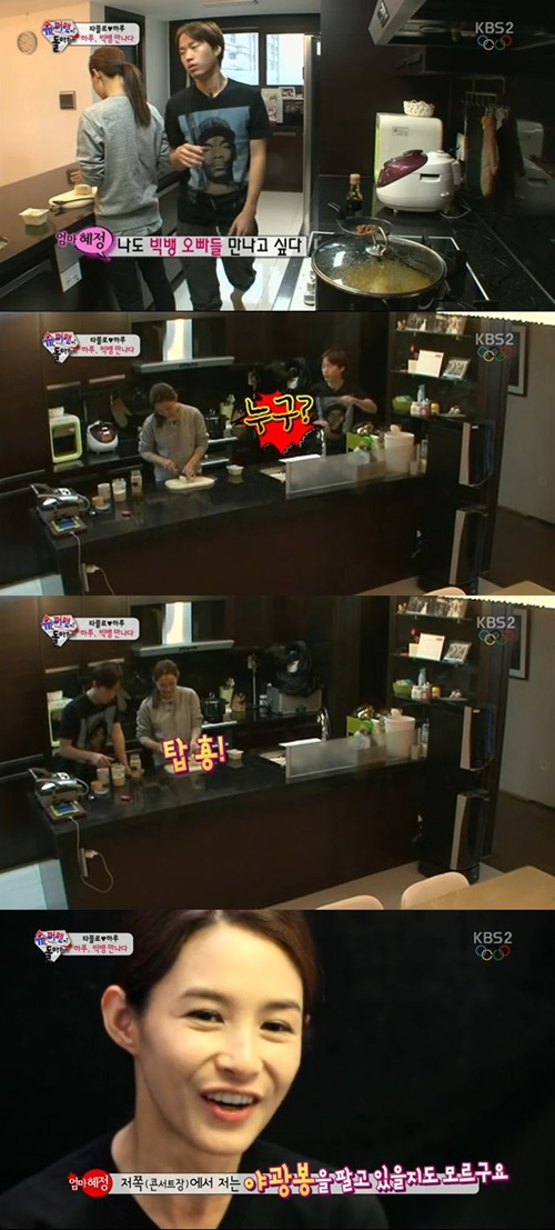 [아시아경제 온라인이슈팀] 배우 강혜정 탑앓이가 화제를 불러일으키고 있다.16일 KBS2 '해피선데이-슈퍼맨이 돌아왔다'(이하 슈퍼맨)에서는 타블로와 딸 하루가 빅뱅의 콘서트를 관람하는 모습이 전파를 탔다.이날 방송에서 강혜정은 "나도 빅뱅 오빠들 만나고 싶어"라고 말했다. 이에 타블로가 "빅뱅 오빠들 누구?"라고 묻자 강혜정은 "탑 형"이라고 대답했다.강혜정의 말에 타블로는 질투심을 드러내며 "만나. 탑 형 만나"라고 말했다.또 강혜정은 개별 인터뷰에서도 "저도 빅뱅 콘서트 정말 가고 싶다. 꼭 (제가 없는)이 시기에 빅뱅 콘서트를 가야했었나"며 "제가 콘서트장 저쪽에서 야광봉을 팔고 있을 수도 있다"고 말해 탑 팬임을 스스로 밝혔다.강혜정이 가수 탑의 팬임을 알게 된 네티즌은 "강혜정 탑앓이, 나도 탑 좋아", "강혜정 탑앓이, 타블로는 그럼 누굴 좋아할까?", "강혜정 탑앓이, 하루도 그럼 탑 오빠 좋아하나?" 등의 반응을 보였다.온라인이슈팀 <ⓒ세계를 보는 창 경제를 보는 눈, 아시아경제(www.asiae.co.kr) 무단전재 배포금지>