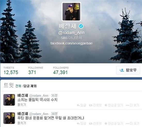 ▲푸틴에 대한 배성재 아나운서 언급.(출처: 배성재 트위터)