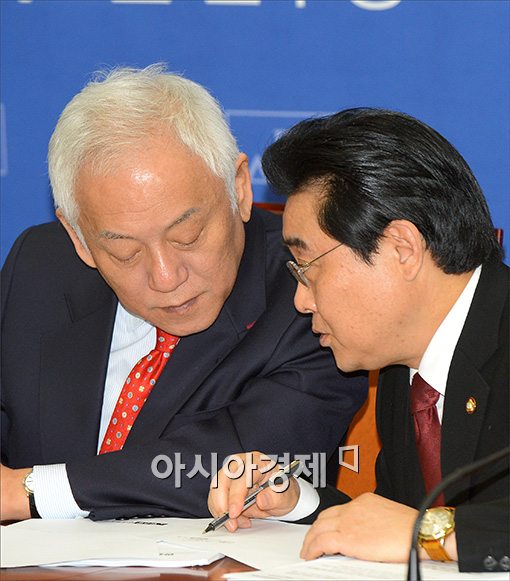 [아시아경제 윤동주 기자] 김한길 민주당 대표가 21일 서울 여의도 국회에서 열린 최고위원회의에서 전병헌 원내대표와 의견을 나누고 있다.윤동주 기자 doso7@asiae.co.kr<ⓒ세계를 보는 창 경제를 보는 눈, 아시아경제(www.asiae.co.kr) 무단전재 배포금지>