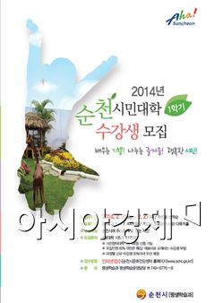 [아시아경제 노해섭 기자]순천시가 순천시민대학 105개 과정 2,125명의 수강생을 오는 27일까지 선착순 모집한다고 21일 밝혔다. 순천시민대학 1학기 교육과정은 시민참여대학 11과정 330명, 직업능력대학 19과정 375명, 문화예술대학 49과정 900명, 인문교양대학 26과정 520명 등 4개 대학 105개 과정 2,125명이다.순천시민이면 누구나 신청 가능하며, 수강신청은 문화건강센터 홈페이지(www.schc.go.kr)를 통해 신청해야 한다.수강료는 미리 납부해야 하며 수강 기간은 다음달 4일 개강하여 7월 4일까지 4개월간 진행된다.올해 시민대학은 시민에게 폭 넓은 배움의 기회를 제공코자 지난해 보다 44개 과정 875여명이 더 참여할 수 있도록 프로그램을 확대했다.특히, 기존 학습에 참여하지 못한 시민을 위해 신규 학습자 50%를 우선 배정하고 1시민 1학습 참여를 적극 독려, 평생학습 교육도시 순천을 만들기에 선도적 역할을 담당할 계획이다. 시 관계자는 "평생학습을 통해 우리지역 시민 개개인의 끼와 능력을 발굴하여 평생학습이 인력자원육성은 물론 지역발전으로 연계되는 우리시 창조경제의 모태가 될 수 있을 것으로 기대한다"고 밝혔다.한편, 순천시는 순천시민대학 외 시간과 공간 제약으로 참여하지 못하는 시민들을 위해 찾아가는 해피 콜 강좌, 평생학습 마을학교, 내 고장 바로알기 탐방학교, 한글작문 교실 등의 생애 단계별 평생학습을 지속적으로 운영하고 있다. 기타 자세한 사항은 시 평생학습과(061-749-6776)로 문의하면 된다.노해섭 기자 nogary@<ⓒ세계를 보는 창 경제를 보는 눈, 아시아경제(www.asiae.co.kr) 무단전재 배포금지>