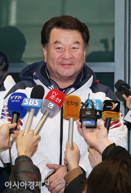[인천=아시아경제 정재훈 기자] 2014 소치 동계 올림픽에서 3승 6패로 공동 8위의 성적을 거둔 여자컬링대표팀(김은지, 김지선, 신미성, 엄민지, 이슬비)이 22일 오후 인천국제공항을 통해 귀국했다. 대표팀 정영섭 감독이 인터뷰를 갖고 있다. 정재훈 기자 roze@asiae.co.kr<ⓒ세계를 보는 창 경제를 보는 눈, 아시아경제(www.asiae.co.kr) 무단전재 배포금지>