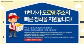 [아시아경제 장인서 기자]오픈마켓 11번가는 도로명 주소 개편의 빠른 정착을 위해 다음달 2일까지 '도로명 주소 변경 캠페인'을 진행한다.11번가는 도로명 주소의 정착과 사회적 비용을 최소화하고 바뀐 주소로 인해 고생하는 택배기사를 응원하고자 이번 캠페인을 기획했다고 24일 밝혔다.11번가 회원이라면 누구나 '도로명 주소 변경 캠페인'에 참여할 수 있다. 11번가 사이트에서 다음달 2일까지 매일 오전 11시 지번(구)주소를 도로명 주소로 변경하는 회원 중 선착순 2500명, 총 1만7500명에게 무료배송 쿠폰을 지급한다. 무료배송 쿠폰을 받은 고객 1인당 희망신발 기금 1100원이 적립된다. 11번가는 적립금과 자체 지원금을 포함해 마련한 희망신발을 택배기사 600여명에게 증정할 계획이다. 임현동 11번가 마케팅기획 그룹장은 "11번가가 대표 온라인 유통 채널로 성장할 수 있었던 배경에는 배송 시스템 발전이 큰 역할을 했다"며 "정부 시책의 빠른 정착에 이바지하는 동시에 배송을 책임지는 기사에게 감사를 표하기 위해 이번 캠페인을 기획했다"고 말했다. 안전행정부의 '도로명 주소'는 기존 지번 대신 도로명과 건물번호만으로 주소를 표기하는 제도다. 장인서 기자 en1302@asiae.co.kr<ⓒ세계를 보는 창 경제를 보는 눈, 아시아경제(www.asiae.co.kr) 무단전재 배포금지>