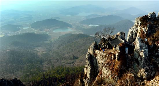 [아시아경제 조용준 여행전문기자]땅끝으로 갑니다. 봄바람이 유혹했습니다. 파란 하늘 아래 쪽빛 바다와 파릇한 마늘밭, 새싹 돋는 보리, 해남 땅끝에 내려앉은 봄볕이 따스합니다. 봄꽃들이 아수성을 치기 전 땅끝은 상큼한 초록빛입니다. 어디 그뿐인가요. 하늘끝도 있습니다. 하늘 높이 치솟은 달마산 뽀족바위 속의 작은 암자 도솔암. 땅끝에서 만난 하늘끝 암자는 이국적이고도 신비스럽습니다. 푸근하고 깊은 정취의 대흥사 새벽 예불소리와 두륜산 산정에서 바라본 다도해도 봄빛이 한가득입니다. 남녘의 땅끝, 두륜산과 달마산을 찾아가는 길에서 만난 봄 풍경은 이렇듯 다른 곳과는 사뭇 달랐습니다. ◇절집 대흥사 지나 두륜산에서 다도해를 품다 새벽 예불소리가 맑다. 숲길을 걸어 두륜산 아래 자리한 절집 대흥사로 간다. 동백꽃향기와 알싸한 새벽공기가 코끝을 자극한다.두륜산의 명물은 두륜봉 정상 바로 아래에 있는 구름다리로 자연이 만든 바위가 이쪽과 저쪽을 잇는 모습이 장관이다.