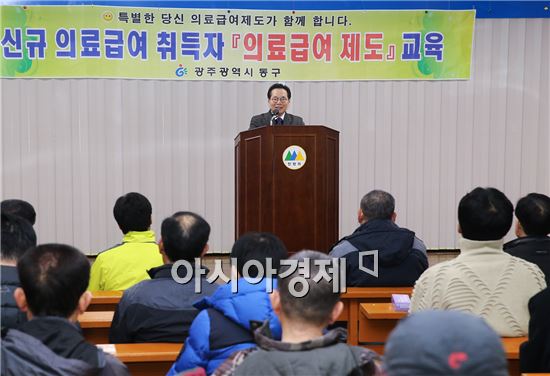 [아시아경제 노해섭 기자] 광주광역시 동구(청장 노희용)는 27일 민방위교육장에서 의료급여 신규수급자 및 관외전입자 250여명을 대상으로 2014년 달라지는 제도에 대한 안내 및 의료급여 전반에 대한 교육을 실시했다. 사진제공=광주시 동구노해섭 기자 nogary@<ⓒ세계를 보는 창 경제를 보는 눈, 아시아경제(www.asiae.co.kr) 무단전재 배포금지>
