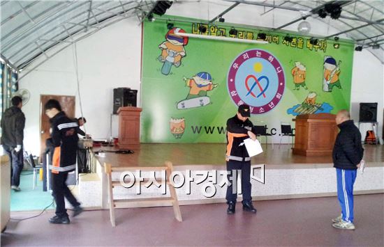 [아시아경제 김승남 기자]완도군은 최근 경주 마우나리조트 체육관 붕괴사고를 계기로 관내청소년 집단 수련 및 연수시설에 대해 긴급 점검을 실시했다. 완도청소년수련원과 완도해조류스파랜드를 대상으로 전라남도, 완도군, 완도119안전센터, 전기안전공사, 가스안전공사 등 관련분야 전문가로 점검반을 구성해 실시했다고 27일 밝혔다. 청소년이나 학생들이 단체로 이용하는 강의실, 숙소, 식당 등에 대해 소방시설 폐쇄·잠금행위, 비상경보시설 작동유무, 노후 소화기 교체상태 및 건축물의 불법 증·개축 위반사항, 긴급구조요원 배치, 전기누전 및 가스 이용 상태 등을 집중 점검했다. 점검을 실시한 결과 경미한 지적사항에 대해서는 즉시 시정토록 조치하여 위험요인을 사전에 해소하고 지적된 전기시설 및 시설물 등은 행정절차를 안내하여 관련규정에 맞게 보완하도록 조치했다. 군 관계자는 "신학기를 맞아 학생들의 집단 수련시설 이용이 급증할 것에 대비해 부모들이 안심하고 아이들이 안전하게 이용할 수 있도록 안전사고 예방 활동을 지속적으로 전개 하겠다"고 밝혔다.김승남 기자 <ⓒ세계를 보는 창 경제를 보는 눈, 아시아경제(www.asiae.co.kr) 무단전재 배포금지>
