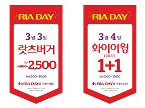 [아시아경제 이광호 기자]롯데리아가 신학기 시즌을 맞아 다음달 3일과 4일 'Ria Day 랏츠버거·화이어윙 할인' 깜짝 이벤트를 실시한다고 27일 밝혔다.이번 이벤트는 이틀간 오후 2부터 10시까지 진행된다. 3일에는 랏츠버거를 45% 할인된 2500원에 판매하고, 4일에는 화이어윙(2조각)을 1+1으로 제공한다. 단 홈서비스와 단체주문은 제외한다.롯데리아의 랏츠버거는 두툼한 호주 청정우 비프패티와 케첩 소스가 어우러진 오리지널 정통 비프버거이며 화이어윙은 신선한 치킨을 사용해 담백한 맛과 매콤한 맛의 조화가 특징인 메뉴다.이광호 기자 kwang@asiae.co.kr<ⓒ세계를 보는 창 경제를 보는 눈, 아시아경제(www.asiae.co.kr) 무단전재 배포금지>
