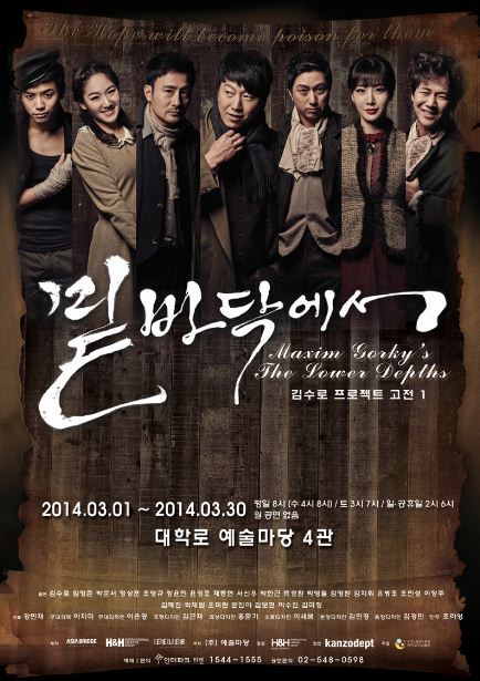 [아시아경제 조민서 기자]어둡고 퀴퀴한 지하실. 좁은 지하실 한 쪽 간이의자에는 병에 걸린 한 여자가 시름시름 앓고 있다. 무대 중앙에 놓인 테이블에 모인 남자들은 행색이 남루하고, 얼굴은 꾀죄죄한 채 실없는 소리나 주고받는다. 몰락한 남작, 창녀, 알코올 중독 배우, 도둑, 도박사 등 우리 사회의 '루저'들의 집합이라고 할 수 있는 이 인간 군상들은 한 줌의 빛도 들어오지 않는 밑바닥에서 하루하루를 연명한다. 그러던 어느 날 이들 앞에서 정체를 알 수 없는 노인 '루카'가 나타난다. 지혜롭고 비범해보이는 이 노인은 죽음을 앞둔 여자를 위로하고, 배우에게는 알코올 중독을 고칠 수 있다는 희망을 준다. 그의 위로는 설령 거짓말일지언정 밑바닥 인생들에게 위안이 된다. 하지만 헛되고 잔인한 희망도 함께 자라난다. 밑바닥에서의 비극은 아직 끝나지 않았다. 러시아의 셰익스피어라고 불리는 막심 고리끼의 희곡 '밑바닥에서'는 제목 그대로 1917년을 배경으로 러시아 밑바닥 인생들의 이야기를 다룬다. 이들은 평생 밑바닥을 벗어날 수 없을 지도 모른다는 막연한 불안감에 시달리면서도, 또 자신에게 어울리는 곳은 밑바닥 밖에 없다는 사실을 너무나도 자연스럽게 받아들인다. '김수로 프로젝트 고전 1탄'으로 돌아온 이번 연극은 원작에 충실하다. 3월 한 달 동안 서울 대학로 예술마당 4관에서 공연되며, 김수로를 포함해 총 25명의 배우들(더블 캐스팅 포함)이 무대에 오른다. 무채색 무대는 시종일관 시끄럽고, 지저분하다. '배우'로 등장한 김수로는 일부러 이 작품의 성격을 감안해 소극장 무대를 찾아다녔다고 한다. 지금까지 뮤지컬 '머더 발라드', '블랙메리포핀스', 연극 '발칙한 로맨스' 시리즈 등 주로 대중적인 작품을 선보였던 그가 고전 시리즈를 들고 나온 것은 언뜻 의외의 선택처럼 보인다. 최근 열린 기자간담회에서 김수로는 "대중들과의 친밀도만 높이려고 할 게 아니라 우리가 성숙하게 고뇌하고 논의해봐야 할 것을 관객들과 나눠야 할 때라고 생각했다"고 말했다. 수많은 고전 중에서도 '밑바닥에서'를 선택한 이유는 개인적인 인연 때문이기도 하다. "대학교 때 은사님이 '페페르' 역으로 이 작품 무대에 설 수 있도록 해주셨다. 그 때 한 학기를 온전히 밑바닥 삶을 살았다. 5년 전 예술의전당에서 다시 '밑바닥에서'를 공연했는데, 무대가 더 작아야 어울린다고 생각했다. 철저하게 1900년대 러시아의 밑바닥으로 돌아가서 관객들이 바로 앞에서 이 작품의 농도를 진하게 느낄 수 있도록 하고 싶었다."이 작품을 하기 위해 김수로는 24명의 배우들을 직접 섭외했다. 대학 동기이자 동료 배우인 임형준도 '남작' 역할로 출연한다. 김수로는 "이 작품은 100년이 지난 지금도 관객들과 함께 우리 사회에 대해 생각하게 만드는 관통점이 있다. 이 작품을 처음 접하고 그때 당시 진하게 받았던 것들을 관객들에게도 전해주고 싶다"고 말했다. 조민서 기자 summer@asiae.co.kr<ⓒ세계를 보는 창 경제를 보는 눈, 아시아경제(www.asiae.co.kr) 무단전재 배포금지>