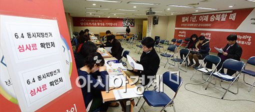 [아시아경제 윤동주 기자] 6.4 동시지방선거 새누리당 공직후보자추천 신청 접수가 시작된 4일 서울 여의도 중앙당사 접수처에서 접수관계자들이 접수 준비를 하고 있다.윤동주 기자 doso7@asiae.co.kr<ⓒ세계를 보는 창 경제를 보는 눈, 아시아경제(www.asiae.co.kr) 무단전재 배포금지>