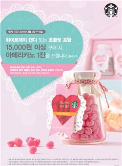 [아시아경제 이광호 기자]스타벅스커피 코리아가 화이트데이를 맞아 전국 매장에서 14일까지 벌꿀이 첨가된 캔디 4종을 한정 판매한다고 5일 밝혔다.화이트데이 캔디는 벌꿀을 각각 첨가한 프로폴리스, 후르츠 믹스, 로즈, 유칼립투스 캔디 등 4종으로 투명 유리 용기에 담겨 포장돼 있다. 가격은 개당 7000원이다.또 벨기에 전통식 스타벅스 수제 초콜릿 세트와 함께, 초콜릿 속에 아몬드, 딸기, 블루베리, 체리, 블랙베리, 원두 등을 담은 6종의 초콜릿 트리플과 공정무역 초콜릿 바, 로고 코인 초콜릿, 유기농 초콜릿 등 15 종의 다양한 초콜릿 제품도 만나볼 수 있다. 스타벅스는 기간 중 화이트데이 캔디 또는 초콜릿을 포함해 1만5000원 이상 구매시 톨 사이즈 아메리카노 1잔을 증정하며, 화이트데이 캔디 2개 구매 시마다 500원씩 할인 혜택과 함께 선물용 캔디 상자를 제공한다.이광호 기자 kwang@asiae.co.kr<ⓒ세계를 보는 창 경제를 보는 눈, 아시아경제(www.asiae.co.kr) 무단전재 배포금지>
