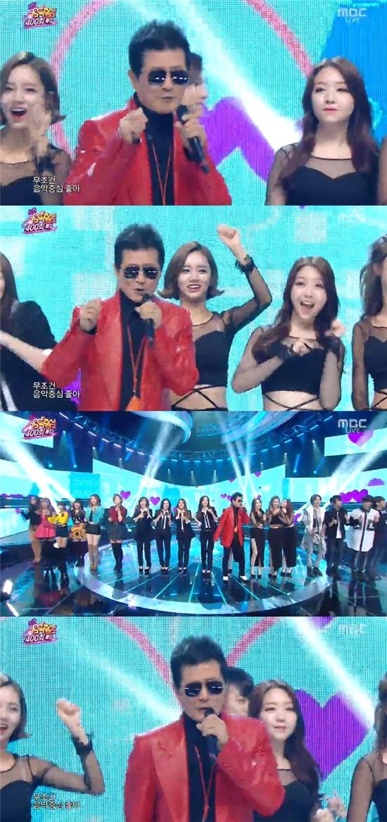 [아시아경제 e뉴스팀]가수 태진아가 젊은 감성을 뽐내며 관객의 눈도장을 찍었다.태진아는 8일 오후 방송한 '쇼! 음악중심' 400회 특집에 출연해 '자기야 좋아'를 열창했다.이날 태진아는 빨간 가죽 재킷과 검정 스키니진을 매치, 감각적인 패션 센스를 자랑했다. 더불어 그는 나이를 잊은 열정적인 무대 매너와 가창력으로 눈길을 모았다. 더불어 가사를 '음악 중심 좋아'로 개사해 관객의 환호를 자아냈다. 후반부에는 티아라, 시스타, B1A4, 시크릿, 걸스데이 후배 가수들이 올라와 축제의 장을 펼쳤다. 태진아의 신곡 '자기야 좋아!'는 태진아가 작곡하고 이루가 작사한 밝은 디스코 리듬의 곡으로, 중독성 있는 멜로디에 따라 부르기 쉬운 가사가 돋보인다는 평이다.한편 이 날 방송에는 동방신기, 소녀시대, 씨스타, 미스에이. 엑소. 씨엔블루 . 티아라. 코요태. 시크릿. 걸스데이. 보이스데이(뉴이스트 렌, 비투비 민혁, 빅스 홍빈, 에이젝스 승진),애프터 스쿨, 가인, 선미. B1A4. 에일리. 태진아가 출연했다.e뉴스팀 ent@asiae.co.kr<ⓒ아시아경제 & 스투닷컴(stoo.com)이 만드는 온오프라인 연예뉴스>