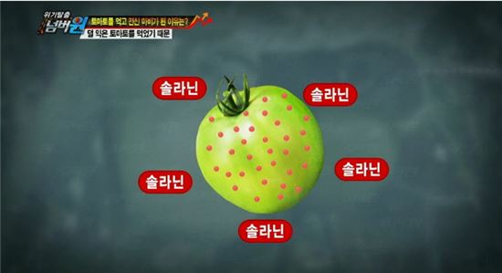 ▲덜 익은 토마토에는 솔라닌이라는 독 성분이 있어 조심해야 한다. (▲출처: KBS2 '위기탈출 넘버원' 캡처)