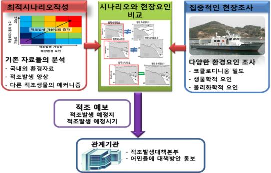 [아시아경제 권용민 기자] 미래창조과학부가 적조 발생 조기예보 시범사업에 착수한다. 이를 통해 적조생물이 바닷물에 급격하게 증가해 물고기를 대량으로 폐사시키는 현상을 발생 1주일 전 미리 예보하고, 피해를 최소화하겠다는 방침이다.미래부는 서울대학교를 적조 발생 조기예보 시범사업의 주관 연구기관으로 선정했다고 12일 밝혔다.이번 사업은 미래부가 적조문제의 주관부처인 해양수산부와 공동으로 마련한 '적조대응 중장기 종합대책'의 적조 예보·예측 기능 강화 방안의 하나다. 올해 해수부는 적조예보의 정확성을 높이고 조기예측이 가능하도록 적조 조사지점 확대, 조사주기 단축, 예보단계 강화 등의 개선방안을 추진한다. 해황·위성·기상정보 등을 종합해 해상도 10km 수준의 '광역 적조예측 모델'을 적조예보에 활용할 계획으로 있는데 이번에 적조예보 시범사업은 해수부의 개선방안을 보완해 국지적인 예측모델을 개발하는 것으로 조기 예측과 정확한 예측모델 개발에 기여하게 된다.현재 적조 예보는 바닷물을 직접 채취해 바닷물에 적조생물이 얼마나 존재하는지를 실험실에서 현미경으로 관찰하는 방식이다. 적조발생 여부에 대한 정확한 진단이 가능한 장점은 있지만 일단 바닷물에 존재하는 적조생물이 언제 어디에서 급증할 것인지에 대해서는 복잡 다양한 해양환경과 연안해역의 특성으로 인해 예측시기와 정확도에 있어서 한계가 있어 왔다.이번 적조발생 조기예보 시범사업은 대부분의 적조가 발생하는 남해 지역 약 60개 지점의 다양한 깊이에서 바닷물을 채취해 지금까지 밝혀진 적조발생 해양환경 조건(수온, 염분, 영양염류 농도, 수온이 급격히 변하는 수심인 수온약층의 깊이 등)과 대표적인 적조생물인 코클로디니움의 생애주기별 특성(최적 환경조건, 수직이동 능력, 다른 적조생물과의 경쟁 등)을 분석해 적조발생 예상시점과 지역을 확정하고 그 결과를 관계기관에 통보하는 방식으로 진행된다. 이 시범사업이 성공할 경우 적조 방제기관과 어민들은 적조생물이 급증하기 1주일 정도 전에 적조발생 예보를 받아 적조 피해를 줄이기 위한 방제 대책을 마련할 시간을 확보할 수 있게 된다.연구책임자인 정해진 서울대 교수는 "현재 기술로도 변화무쌍한 해양환경에서 적조 발생을 정확히 예측하는 것은 매우 도전적인 목표"라면서도 "적조 전문가로서 사명감을 갖고 최선을 다할 것"이라고 말했다.박재문 미래부 연구개발정책실장은 "이번 시범사업을 계기로 해양수산부 등 관계기관과 긴밀하게 협조해 적조 발생 시점과 장소를 조기에 정확하게 예측할 것"이라며 "매번 반복되는 적조 피해에 충분히 대비할 수 있도록 최선을 다할 것‘이라고 강조했다.권용민 기자 festym@asiae.co.kr<ⓒ세계를 보는 창 경제를 보는 눈, 아시아경제(www.asiae.co.kr) 무단전재 배포금지>