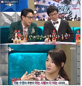▲수영은 이날 정경호와의 사적인 친분이 있음을 공개했다. (출처:MBC-'라디오스타' 방송캡처)