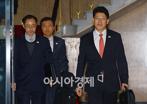 [아시아경제 윤동주 기자] 13일 개성공단 종합지원센터에서 열릴 상사중재위 회의에 참석하는 최기식 통일법무과장(오른쪽) 등 통일부 관계자들이 방북하기 위해 서울 삼청동 남북회담본부를 나서고 있다. 개성공단 상사중재위 회의는 기업 관련 분쟁 사안을 논의할 첫 남북 당국간 회의이다.윤동주 기자 doso7@asiae.co.kr<ⓒ세계를 보는 창 경제를 보는 눈, 아시아경제(www.asiae.co.kr) 무단전재 배포금지>