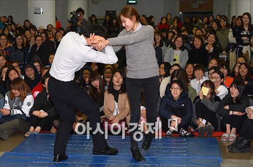 [포토]숙대생, 무술유단자에게 호신술을 배우다