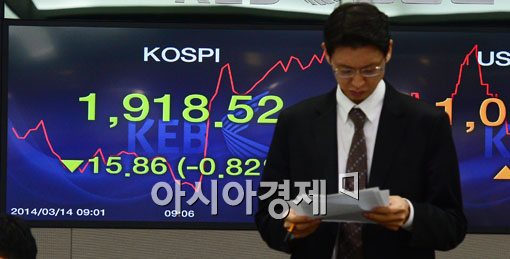 [아시아경제 백소아 기자] 14일 서울 중구 외환은행 본점 딜링룸에서 딜러들이 외환업무를 보고 있다. 이날 코스피 지수는 뉴욕증시 하락 여파로 전날보다 18.31p 떨어진 1916,07p로 출발해 하락세를 이어가고 있다.백소아 기자 sharp2046@asiae.co.kr<ⓒ세계를 보는 창 경제를 보는 눈, 아시아경제(www.asiae.co.kr) 무단전재 배포금지>