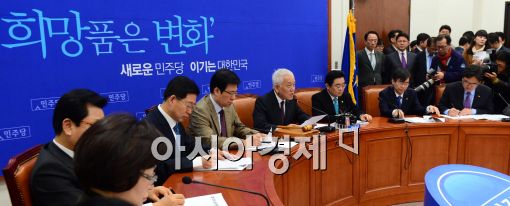[아시아경제 최우창 기자]14일 민주당 최고위원회의가 서울 여의도 국회 당 대표실에서 열린 가운데 김한길 민주당 대표가 모두발언을 하고 있다.최우창 기자 smicer@asiae.co.kr<ⓒ세계를 보는 창 경제를 보는 눈, 아시아경제(www.asiae.co.kr) 무단전재 배포금지>