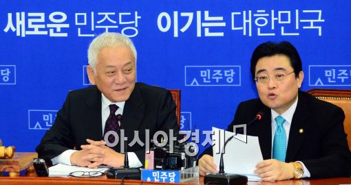 [아시아경제 최우창 기자]14일 민주당 최고위원회의가 서울 여의도 국회 당 대표실에서 열린 가운데 김한길 민주당 대표가 전병헌 원내대표의 모두발언을 들으며 잠시 미소를 짓고 있다.최우창 기자 smicer@asiae.co.kr<ⓒ세계를 보는 창 경제를 보는 눈, 아시아경제(www.asiae.co.kr) 무단전재 배포금지>
