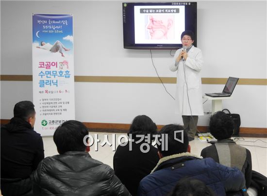 “ 한방(韓方)으로 수면장애 치료”[아시아경제 곽경택 기자]고흥군(군수 박병종)이 수면장애, 주간졸림, 피로, 두통 등 코골이, 수면무호흡 증상이 심한 관내 직장인 30여명을 대상으로 지난주부터 12주간 매주 목요일에 ‘코골이-수면무호흡클리닉’을 운영해 큰 호응을 얻고 있다.코골이나 수면 무호흡증은 비만, 흡연, 수면 자세, 코막힘, 술이나 약물 등이 주요 원인이며 수면무호흡증이 계속되면 기억력, 판단력, 집중력이 떨어지고, 심할 경우 고혈압, 심혈관계 질환, 뇌졸중, 부정맥 등으로 이어질 수 있어 빠른 치료가 필요하다.이와 관련, 고흥군 보건소 '한의약 코골이-수면무호흡클리닉'에서는 코를 고는 부위의 정체되어 있는 기혈순환을 개선하기 위한 한방진료 및 코골이 관리 식이, 양생교육, 기공체조, 아로마테라피 체험 등을 시행한다.운영시간대는 퇴근시간 이후로 정해 직장인의 편의를 도모하고 있다.이번 프로그램에 참여한 직장인 박모(남· 51)씨는 “본인에게 너무 필요한 프로그램이 이제야 나타났다”며 “적극적으로 참여해 이번기회에 코골이를 꼭 치료하고 싶다”는 굳은 의지를 보였다.보건소 관계자는 “내년에는 프로그램 참여 대상자를 더 확대하여 코골이, 수면무호흡증으로 고생하는 군민들이 편안한 잠자리를 경험할 수 있도록 최선을 다할 것이다”라고 밝혔다.곽경택 기자 ggt1359@ <ⓒ세계를 보는 창 경제를 보는 눈, 아시아경제(www.asiae.co.kr) 무단전재 배포금지>