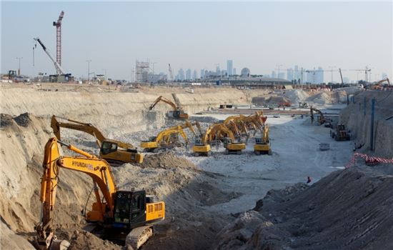 현대건설은 카타르의 신도시 루사일에서 도하의 신 중심인 알 와다(Al Wahda) 인터체인지까지 약 6㎞에 이르는 고속도로 확장공사를 진행 중이다. 현장에서 수십여대의 굴착기가 도로 포장에 앞서 땅을 파내는 등 기초공사를 하고 있다.