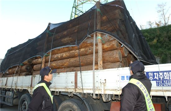 재선충병이 번지는 것을 막기 위한 봄철 '소나무 이동특별단속' 모습.