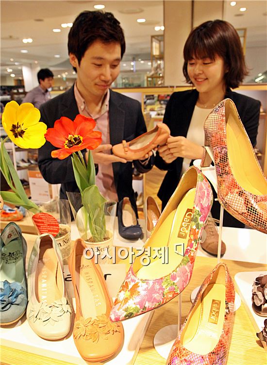 광주신세계 3층 구두매장에서 화사한 봄을 연상하게 하는 플랫슈즈, 하이힐 등 다채로운 색상과 새로운 디자인으로 만들어진 슈즈를 선보이고 있다.