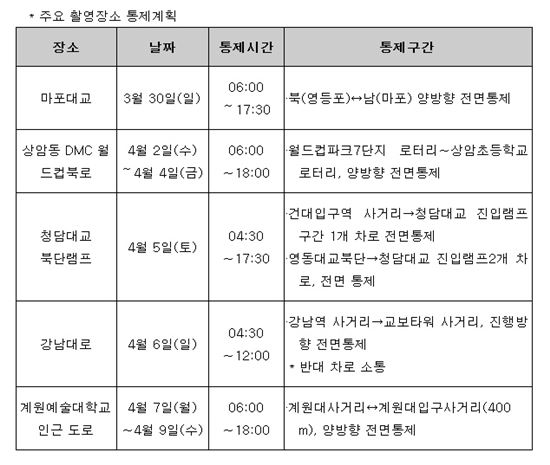 ▲어벤져서2 촬영으로 인해 서울 도심의 교통이 통제될 예정이다. (출처: 문화체육관광부 홈페이지 캡처)