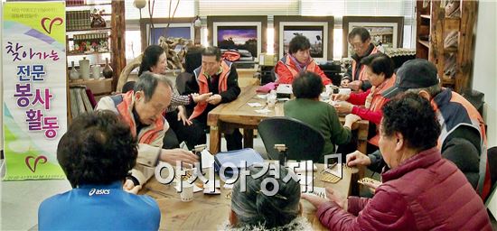 [아시아경제 김재길 기자](사)정읍시자원봉사센터와 전라북도자원봉사센터가 공동으로 주관한 ‘어르신을 위한 문화공연 및 전문봉사서비스’행사가 21일 시 관계자와 김영대 정읍시자원봉사센터 이사장, 김기원 전라북도자원봉사센터 이사장 등이 참석한 가운데 정읍시북부노인복지관에서 열렸다.이날 행사에 참여한 4개 분야 20여명의 전문 자원봉사단은 복지시설 입소자와 소외계층 어르신 300여명을 대상으로 수지침과, 귀반사, 네일아트, 건강검진 등 다양한 봉사를 펼쳐 즐거움과 함께 훈훈한 감동을 선사했다.또한 봉사활동에 앞서 전북도자원봉사센터 문화공연팀의 각설이타령과 밸리댄스 및 가요 등 가무공연 등이 펼쳐져 행사에 참석한 어르신들의 흥을 한껏 돋웠다.시 관계자는 “어르신들이 즐겁고 건강하게 노후생활을 보낼 수 있도록 앞으로도 다양한 복지사업을 확대해 나갈 계획”이라며 “오늘 이 행사가 자원봉사에 대한 인식전환과 자원봉사 인구의 저변 확대의 계기가 되기를 바란다”고 말했다.한편 전북도자원봉사센터는 지역주민 어르신들을 위한 다양한 문화예술 활동을 펼쳐 지역공동체 분위기 조성에 기여하고 자원봉사 활성화에 이바지하기 위해 각 지역을 순회하며 지역자원봉사센터와 공동으로 행사를 개최해오고 있다. 김재길 기자 <ⓒ세계를 보는 창 경제를 보는 눈, 아시아경제(www.asiae.co.kr) 무단전재 배포금지>