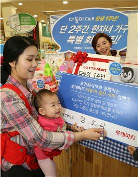 [아시아경제 장인서 기자]롯데마트가 운영하는 '다둥이클럽'이 출산 장려 역할을 톡톡히 하고 있는 것으로 나타났다. 롯데마트는 지난달 말 '다둥이클럽' 출시 1주년을 맞아 1자녀 가구를 대상으로 출산 서약 시 가입 혜택을 제공한 결과 약4만5000명의 가구가 둘째 출산을 약속했다고 23일 밝혔다.이는 지난해 태어난 신생아수의 10%에 달하는 수준으로 출산 장려에 실질적인 기여를 할 것으로 마트 측은 전망했다. '다둥이클럽'은 2013년 2월 출범 후 연중 상시 할인 및 다양한 제휴 서비스로 육아비용 부담을 줄였다. 그 결과 출시 1년 만에 회원수가 총 26만 가구를 돌파했다. 제휴 서비스를 통해 다가구 자녀 회원이 연간 누린 혜택은 약 200억원에 달한다.이 같은 혜택은 관련 제품 매출에도 영향을 미쳐, 지난 한해 유아식 8.3%, 유아 스킨케어 12.8%, 유아 서적 14.7%, 완구 5.2% 등 유아 카테고리 전 제품에 걸쳐 고른 신장세를 보였다. 이에 롯데마트는 '다둥이클럽' 서비스를 지속적으로 강화해 대표 육아 지원책으로 입지를 공고히 한다는 방침이다. 롯데마트 관계자는 "올해는 다둥이클럽 할인 적용 상품을 지난해보다 1.5배가량 많은 180개 브랜드 5000개 상품으로 확대할 계획"이라며 "상품 할인에 그치는 것이 아니라 다둥이클럽 고객의 장바구니 분석을 통해 제조업체와 함께 육아 관련 상품 개발에도 적극적으로 나서겠다"고 말했다.장인서 기자 en1302@asiae.co.kr<ⓒ세계를 보는 창 경제를 보는 눈, 아시아경제(www.asiae.co.kr) 무단전재 배포금지>