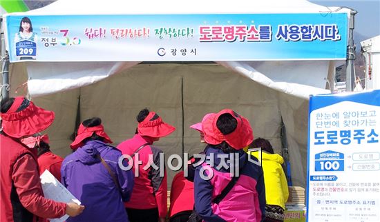 광양시가 광양매화문화축제장에서 관광객을 대상으로 도로명 주소 사용 홍보를 펼쳤다.