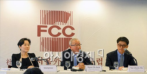 [아시아경제 윤동주 기자] 현오석 경제부총리 겸 기획재정부 장관이 25일 서울 중구 프레스센터에서 열린 외신기자간담회에서 모두 발언을 하고 있다.윤동주 기자 doso7@asiae.co.kr<ⓒ세계를 보는 창 경제를 보는 눈, 아시아경제(www.asiae.co.kr) 무단전재 배포금지>