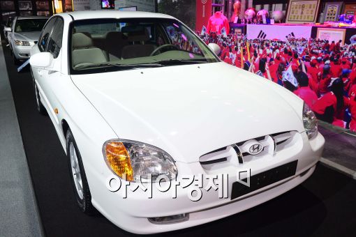 [아시아경제 최우창 기자]25일 서울 강남구 삼성동 코엑스에서 열린 글로벌 프리미엄 중형차 'LF 쏘나타' 출시 행사장에서 1998년 3월에 출시된 2000ccr급 4세대 쏘나타 차량을 전시하고 있다.최우창 기자 smicer@asiae.co.kr<ⓒ세계를 보는 창 경제를 보는 눈, 아시아경제(www.asiae.co.kr) 무단전재 배포금지>
