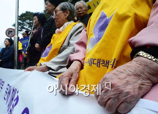[아시아경제 백소아 기자] 26일 서울 종로구 일본대사관 앞에서 열린 제1119차 일본군 위안부 문제 해결을 위한 정기 수요집회에서 길원옥 할머님이 주름진 손으로 현수막을 붙잡고 계시다.백소아 기자 sharp2046@asiae.co.kr<ⓒ세계를 보는 창 경제를 보는 눈, 아시아경제(www.asiae.co.kr) 무단전재 배포금지>