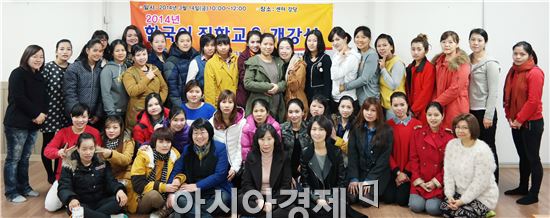 고창군다문화가족지원센터는 한국어교육 개강식을 갖고 기념촬영을 하고있다.
