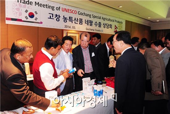 고창군이 지난 20일부터 28일까지 인도와 네팔에서 식품 바이어를 대상으로 고창 농특산품 설명회와 수출상담회를 성공리에 가졌다.<br />