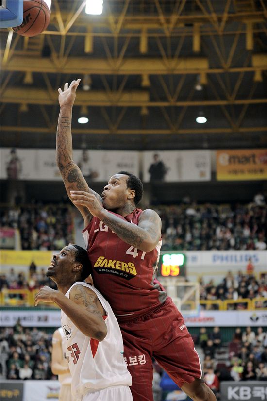 [아시아경제 이종길 기자]프로농구 창원 LG는 4월 2일부터 울산 모비스와 챔피언결정전을 한다. 지난 26일 부산사직체육관에서 부산 KT를 96-82로 이겨 3연승으로 4강 플레이오프를 돌파했다.LG의 중심에는 데이본 제퍼슨(28)이 있다. 24분50초 동안 뛰며 25득점 13리바운드를 기록했다. 그는 첫 경기에서도 18득점 15리바운드로 활약했다. 두 번째 경기에서는 15득점 9리바운드를 기록했다. 제퍼슨은 "챔피언결정전에 누가 올라오든 상관없다"고 했다.제퍼슨은 철저한 자기관리로 LG 구단의 마음을 사로잡은 선수다. 하루도 훈련을 거르지 않았다. 쉬는 날에도 슈팅 훈련을 했다. 훈련을 하고 남은 시간은 대부분 팀 동료 크리스 메시(37)와 식사를 하는데 할애했다. 문태종(39)은 그를 "언제나 준비된 선수"라고 했다. 제퍼슨은 "프로에게는 경기력 유지가 가장 중요하다"며 "어떤 경기든 적극적으로 뛰는 것이 나의 임무"라고 했다.시즌 초반에는 고전했다. 2012-2013시즌 러시아리그 득점왕 출신으로 기대를 모았지만 15경기 가운데 5경기에서 한 자릿수 득점에 머물렀다. 10경기에서는 리바운드 5개를 넘기지 못했다. 제퍼슨은 "적응이 쉽지 않았다. 실수할까봐 불안해 자신감도 떨어져있었다"고 했다. 돌파구는 팀 훈련에서 찾았다. 그는 "동료들과 손발을 계속 맞추면서 경기력을 회복했다. 좋은 상황을 많이 만들어준 동료들에게 감사하다"고 했다. 적응을 마친 제퍼슨은 리그를 지배했다. 정규리그 53경기에서 평균 17득점 6.9리바운드 1.6도움을 기록했다. 전체 득점 4위, 리바운드 8위에 올랐다. 야투성공률은 58.7%로 5위. 378개로 전주 KCC의 타일러 윌커슨(26ㆍ451개)에 이어 두 번째로 많이 넣었다. 협력 플레이도 돋보였다. 골밑에서 활발하게 움직여 팀의 공격을 다양하게 했다. 문태종은 제퍼슨의 덕을 본 대표적인 선수다. 그는 "제퍼슨 덕에 공격 부담을 크게 덜었다. 늘 자신보다 팀을 먼저 생각하는 선수"라고 칭찬했다.데이본 제퍼슨[사진=아시아경제 DB]